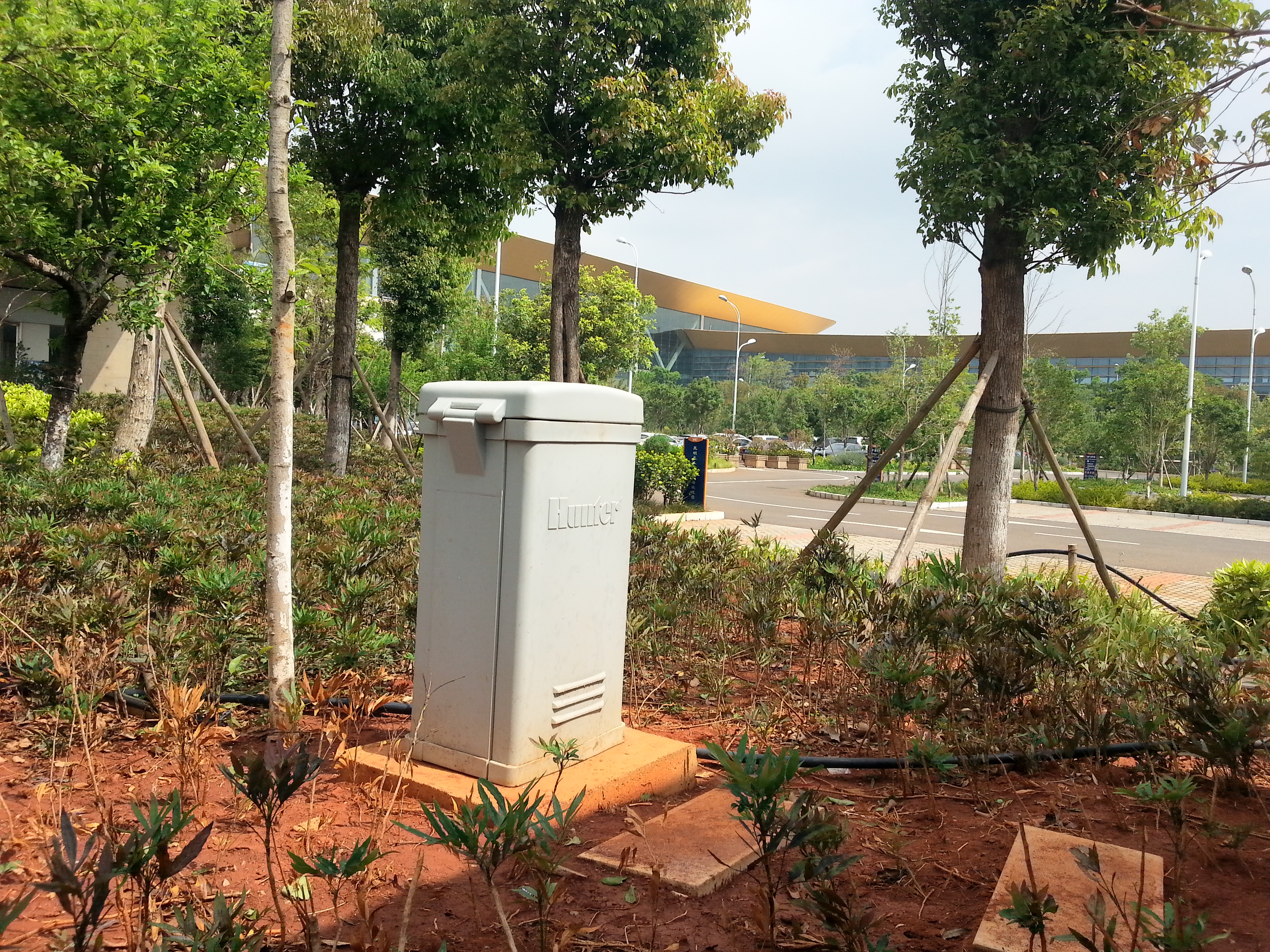 長水機(jī)場項目使用的HUNTER設(shè)備較齊全,其中塑料基座式ACC控制器,SOIL-CLIK土壤濕度傳感器,F(xiàn)LOW-CLIK流量傳感器,PGP-12,PROS-12噴頭體等設(shè)備在云南園林噴灌中是第一次使用,并且一個項目中使用了4個HUNTER的傳感器,在云南省也尚數(shù)首例。