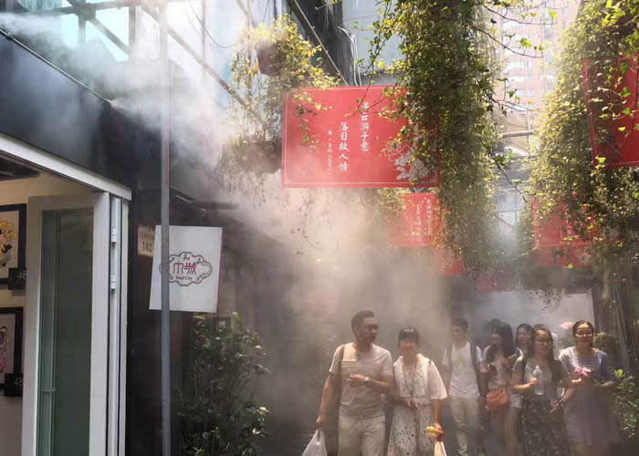作為上海的3A景區(qū)之一,田子坊每天都人頭攢動(dòng),連日高溫讓許多游客不能細(xì)細(xì)品味老上海的弄堂風(fēng)情。為此,管委會采用了綠友集團(tuán)自行研發(fā)制造的GREENMAN造霧系統(tǒng),200多個(gè)噴頭每小時(shí)噴霧三次,每次噴霧2分鐘,配合弄堂兩邊墻壁種植的綠化,不僅美化了街景,更對降低整個(gè)田子坊的溫度起到了有效的作用?,F(xiàn)場溫度計(jì)顯示,不進(jìn)行噴霧的弄堂溫度是36 攝氏度,噴霧后,弄堂溫度顯示33攝氏度,最低的地方溫度甚至降到28攝氏度,降溫明顯。
