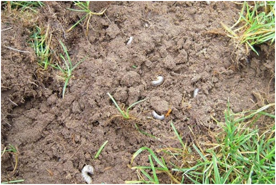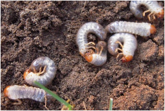 如果七月底正常澆水,已經(jīng)為草坪補(bǔ)充了足夠的水分,但仍然出現(xiàn)了這種情況,同時(shí)向上抓取枯黃草皮,很容易即可將其抓起,根系缺失,土壤表面可以發(fā)現(xiàn)白白的“小肉蟲子”,這個(gè)就是我們今天要聊的蠐螬。