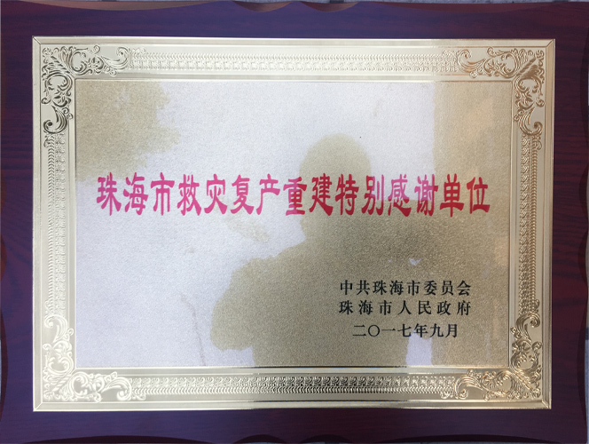 9月,綠友集團得到了中共珠海市委員會、珠海市人民政府的表彰,被評為“珠海市救災(zāi)重建特別感謝單位”。