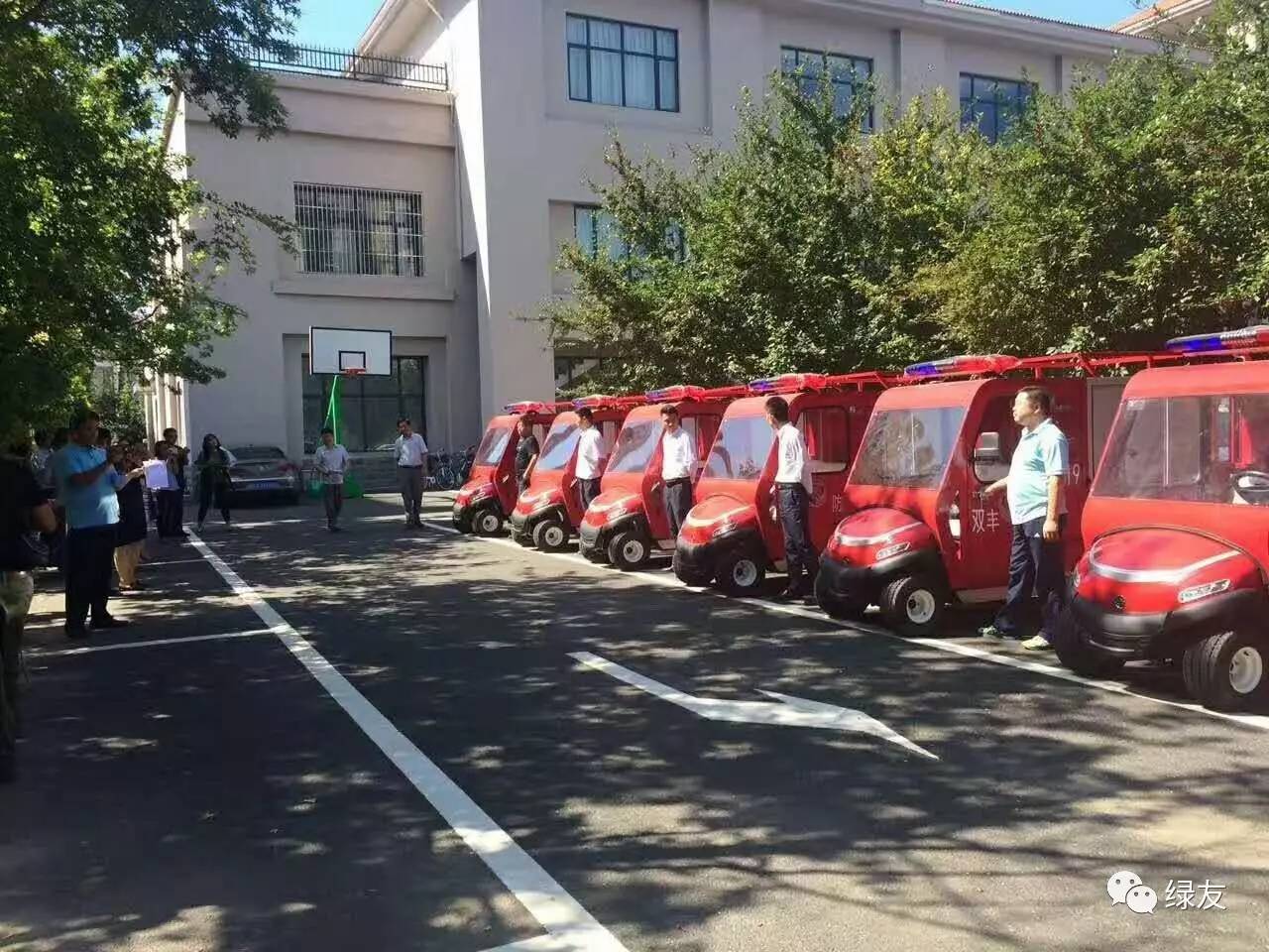 8月4日上午9點半,綠友集團向雙豐街道辦事處交付了一批全電動高壓細(xì)水霧式微型消防車。為突出建設(shè)平安社區(qū)的決心,雙豐街道辦事處舉行了隆重的微型電動消防車發(fā)放儀式。