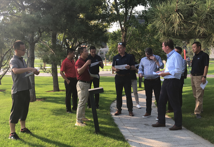 先正達(dá)專業(yè)環(huán)境部草坪與園林業(yè)務(wù)全球市場(chǎng)總監(jiān)Mr? Mark、公共衛(wèi)生全球業(yè)務(wù)總監(jiān)Mr? Andy、亞太區(qū)業(yè)務(wù)總監(jiān)Mr? Mick、中國(guó)區(qū)業(yè)務(wù)總監(jiān)端木瑞康先生以及中國(guó)區(qū)草坪與園林業(yè)務(wù)經(jīng)理潘全山先生、中國(guó)區(qū)市場(chǎng)經(jīng)理?xiàng)畲好飨壬惨煌L問(wèn)了綠友集團(tuán)。