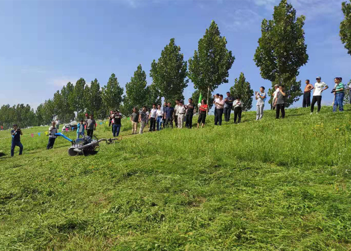 今年夏天,綠友集團相關(guān)人員和德國Brielmaier公司兩名工程師一行來到山東東營市,在酷日和暴雨的黃河大堤上檢驗這臺多功能剪草機的使用效果。
