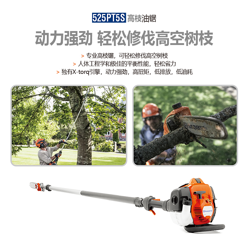 為專業(yè)用戶而設(shè)計(jì),富世華525PT5S配備延長(zhǎng)桿,可以清除高空樹(shù)枝,人體工程學(xué)和平衡性助您以輕松的方式完成任務(wù)。操作簡(jiǎn)便,X-Torq?引擎保證強(qiáng)勁動(dòng)力,高扭矩,低排放和低油耗。