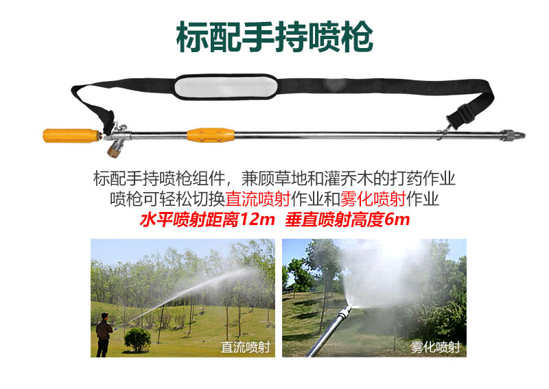 √ 配高壓噴槍,可用于灌木、樹木的打藥作業(yè),也可用于清理小廣告、灰塵等。